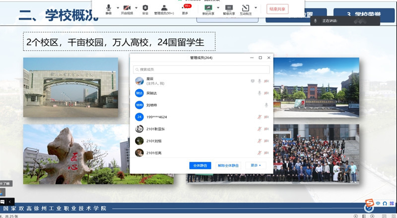 在爱校荣校教育中,各二级学院开展了以“初见·我的大学”、“遇见·我的班级”为主题的校史、校情及校训精神教育。各班主任带领新生了解学校发展现状、发展前景、办学特色、办学水平,增强新生对母校的归属感、认同感和自豪感。二级学院充分利用校园驿站的校园漫游模块资源,以VR全景的形式带领新生漫游校园,部分学院采用视频直播的方式带领新生身临其境游览校园,沉浸式的体验使同学们立体而直观的对校园环境有了初步的了解。